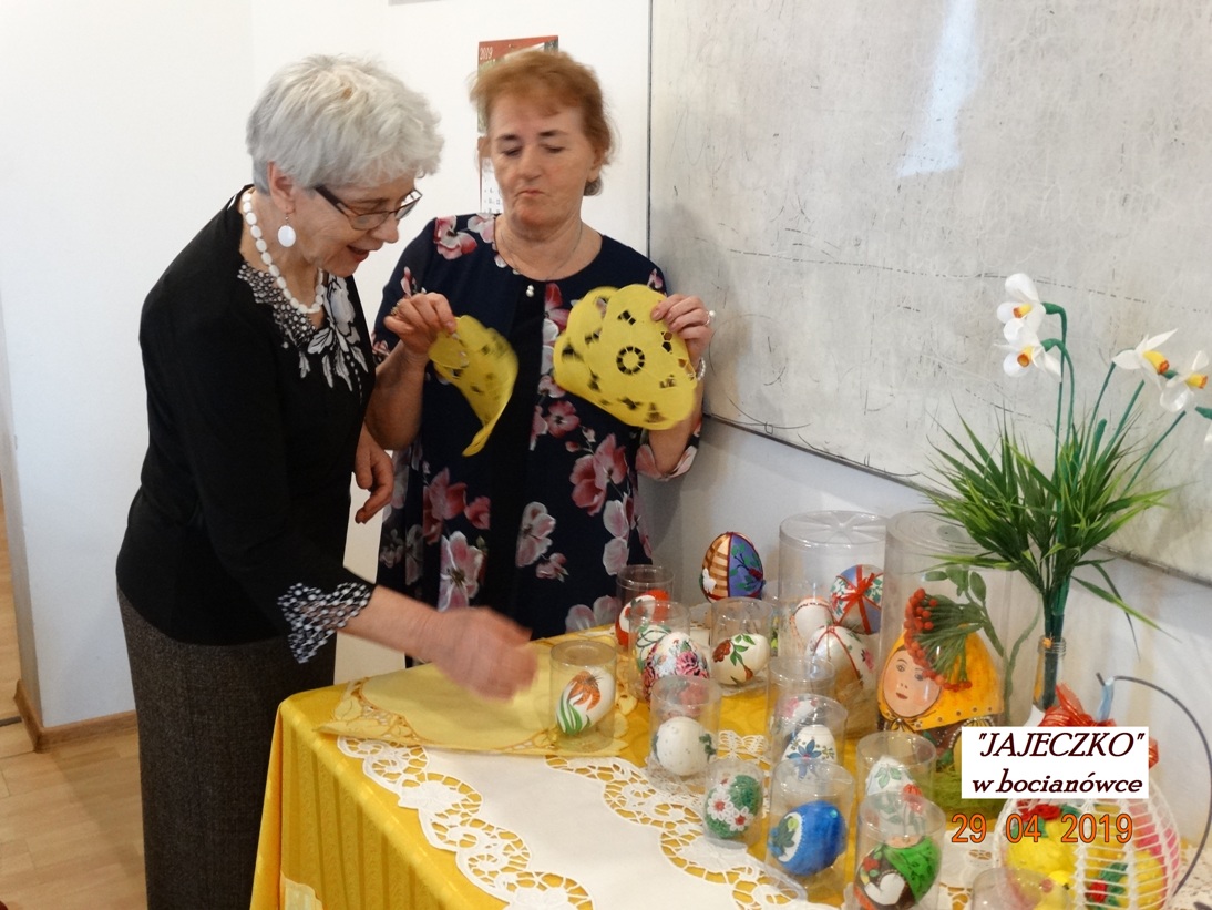 Nasze koleżanki Janina Biega i Anna Rettinger przygotowały małą wystawę wykonanych przez siebie, wspaniałych dzieł związanych właśnie z wielkanocnymi świętami.
