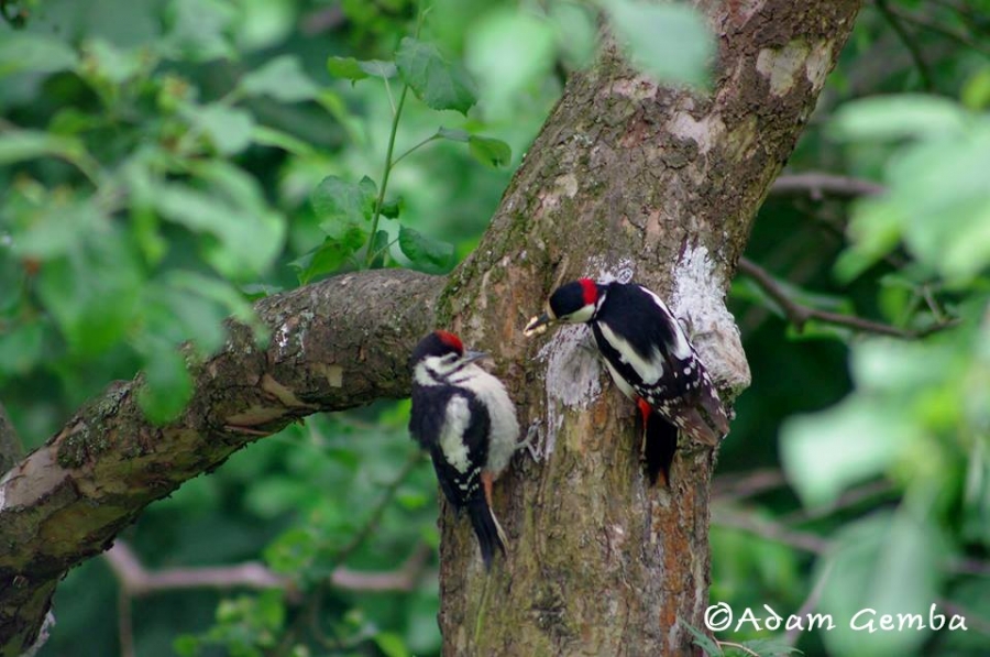 Nasz kolega, podczas spaceru "podpatrzył" piękną scenę - samca dzięcioła dużego, który karmił swoje młode - także samczyka. To "tylko" ptaki, a ileż w ich zachowaniu uczucia i "rodzicielskiej"  troski...